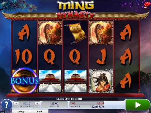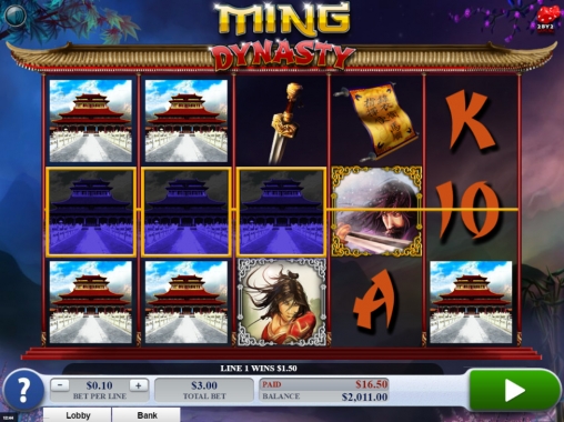 Видео-слот «Династия Мин» состоит из пяти барабанов с разными типами символов. Они выстраиваются на основном экране в три ряда. Играть можно лишь по тридцати активным линиям, поставив на каждую от одного цента до одного доллара (0.30 – 30 долларов на раунд).