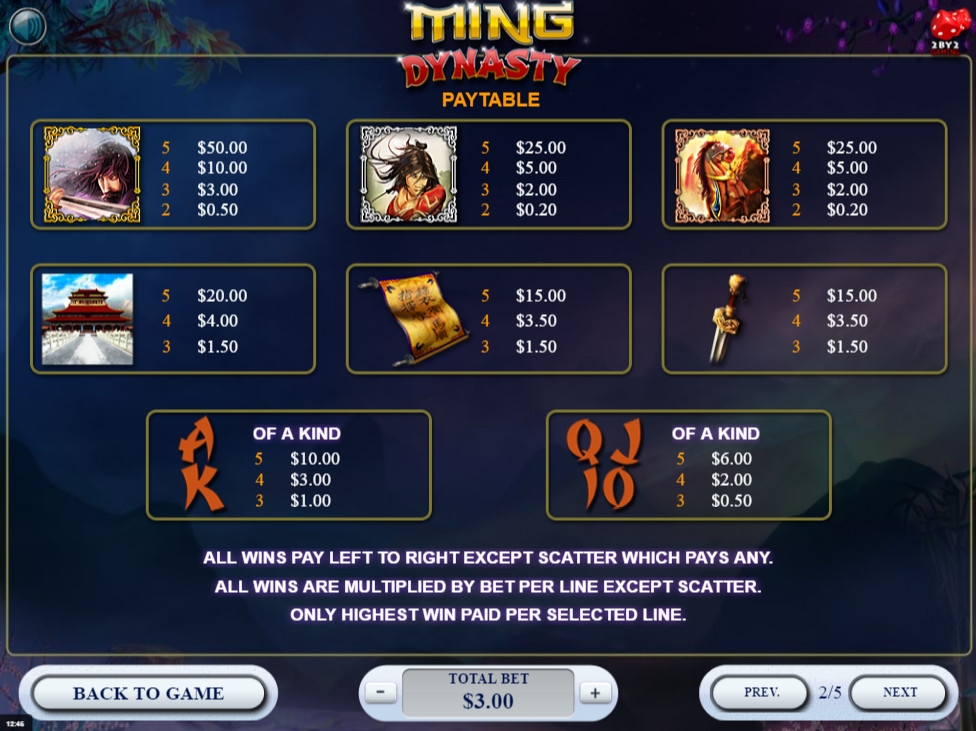 Игры по равным шансам в Ming Dynasty нет. Исключения и призовые опции обсуждаются далее в статье.