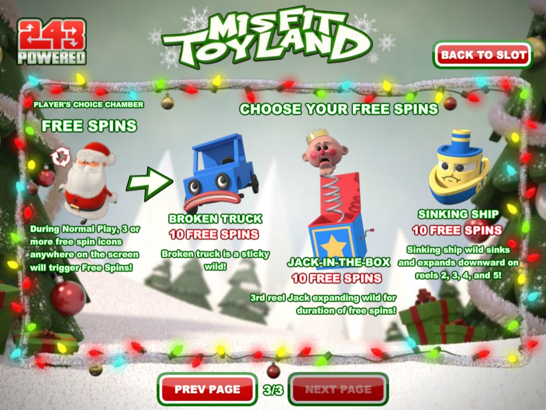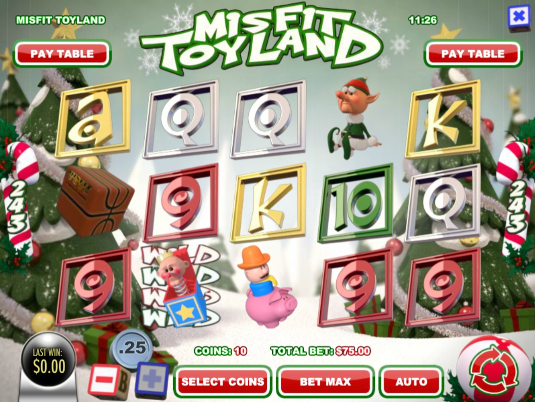 В игровом автомате Misfit Toyland пять барабанов и пятнадцать позиций для иконок на главном экране.