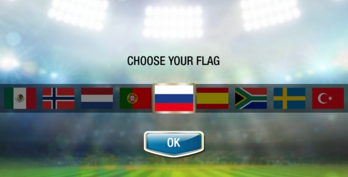 При запуске видео-слота появляется информационная заставка с описанием бонусов. Затем появляется экран, на котором нужно выбрать флаг любимой команды. Далее возникает основной интерфейс. На панели вы увидите такие надписи: