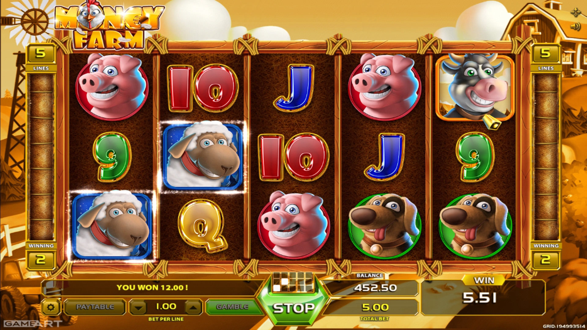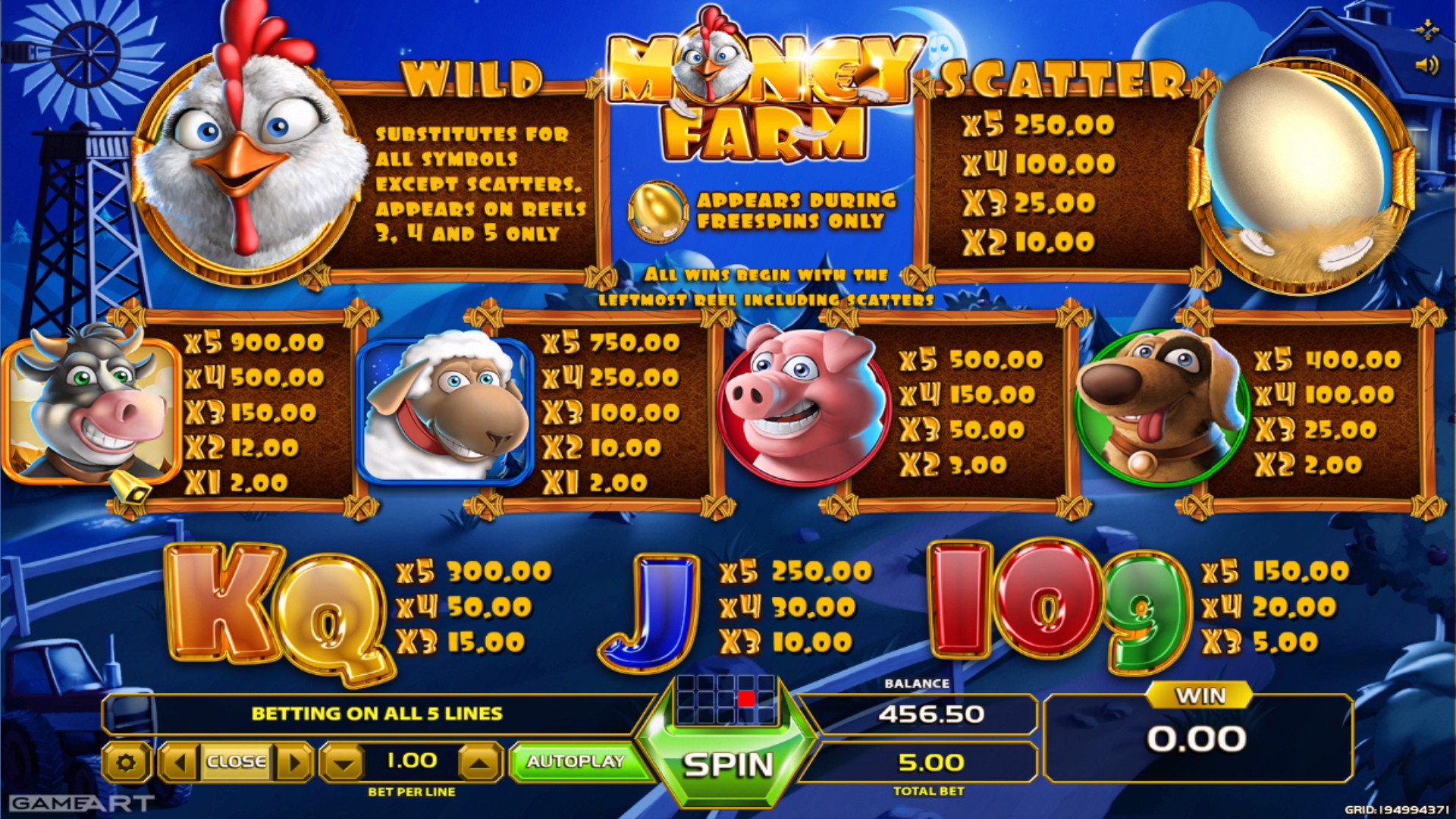 Продукция компании GameArt не так хорошо известна рядовому любителю азартных развлечений, как модели некоторых более раскрученных брендов. Однако специалисты отмечают ее высокое качество, и есть все основания полагать, что в ближайшем будущем игры данного производителя будут представлены во многих интернет-казино. Чтобы вы могли сами в этом убедиться, предлагаем вам лично испытать красочный видео-слот Money Farm, который является одной из новинок студии.