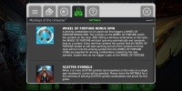- Wheel of Fortune – «Колесо фортуны» запускается при каждом образовании комбинации на активной линии. На дополнительном экране появляется барабан с десятью секторами. В них изображены базовые картинки. Спин колеса определяет одно изображение. Если это элемент, составивший выигрышную цепочку, он растягивается на целые колонки на главном экране, в результате чего образуются дополнительные комбинации. Выплаты по ним начисляются согласно базовым коэффициентам.