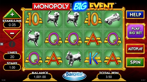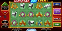 В Monopoly – Big Event двадцать постоянно задействованных линий, на которых образуются комбинации. На них принимаются только одинаковые ставки. Они могут быть от одного цента до двадцати пяти долларов. Так что на спин разрешается ставить до пятисот долларов.