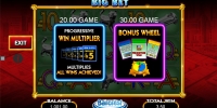 Кроме того, пользователь может активировать так называемую «большую ставку» (Big Bet). Она предлагается в двух разновидностях – двадцать или тридцать кредитов – и открывает доступ к дополнительным бонусным функциям.