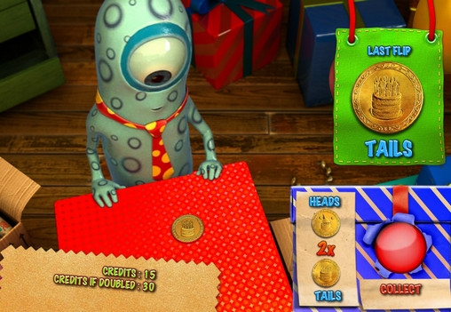 Общую выплату, полученную за спин, можно попытаться увеличить в риск-игре слота Monsters’ Party. Здесь нужно будет сыграть в монстром в орла или решку. Если победите вы, сумма удвоится, если чудовище – вы лишитесь ставки. Количество удачных попыток в одном раунде ограничено правилами.