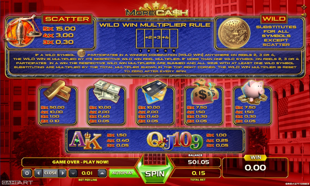 Вы любите деньги? Ладно, можете не признаваться, если считаете данное пристрастие постыдным (хотя нам оно кажется вполне естественным). Мы задали этот вопрос, так как собираемся познакомить вас с очень эффектной игрой от GameArt. Видео-слот More Cash посвящен всему, что связано с финансами: денежным купюрам, пластиковым карточкам, банковским мешкам и даже копилкам. Если вы неравнодушны к тематике, скорее запускайте новинку. Разобраться в правилах поможет обзор от Casinoz.
