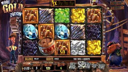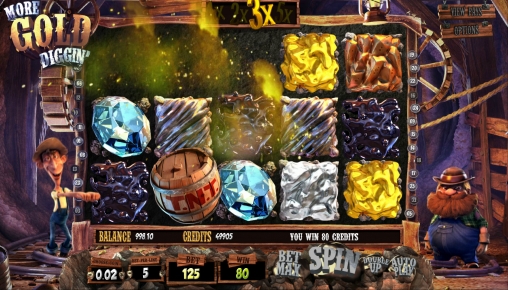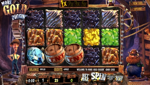 More Gold Diggin’ – это очень добротная модель с интересным принципом образования многочисленных комбинаций в каждом спине, выгодными экстра-множителями, классным раундом призовых вращений и, конечно же, бесподобной трехмерной графикой. Также нельзя не отметить компанию из веселых персонажей игры.