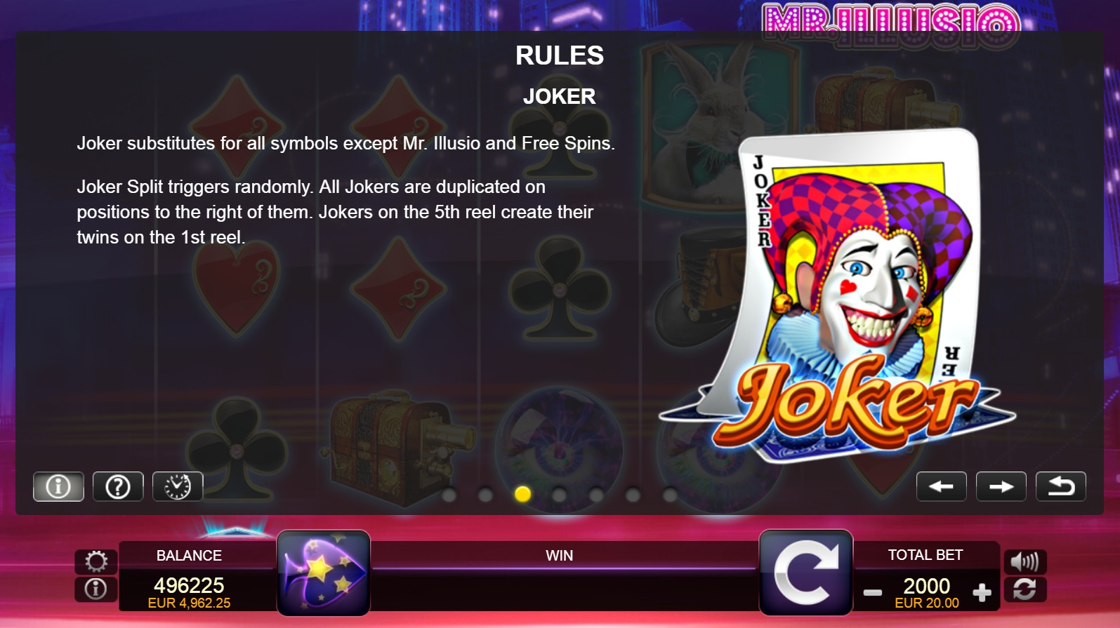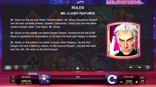 Теперь рассмотрим правила бонусов с участием Мистера Иллюзио: