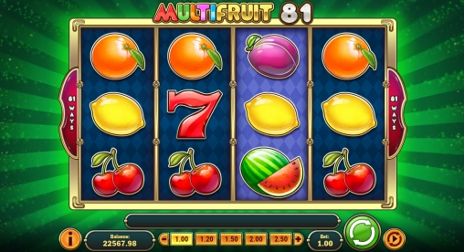 Создатели MultiFruit 81 изобразили на барабанах аппетитные ягоды черники, сочные лимоны, яркие вишни, налитые сливы и другие плоды. Также есть красная семерка и BAR.