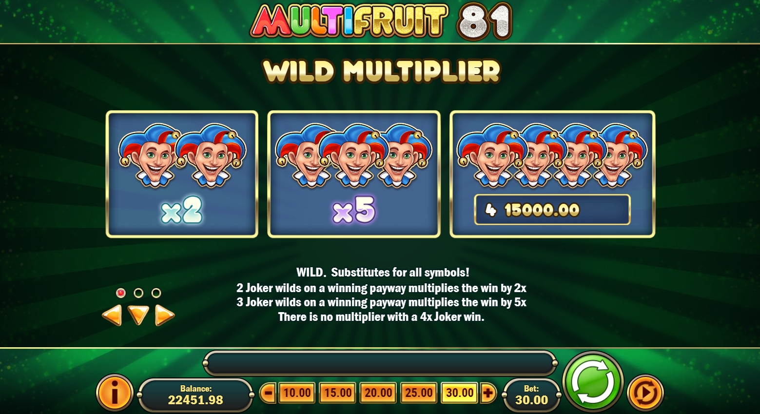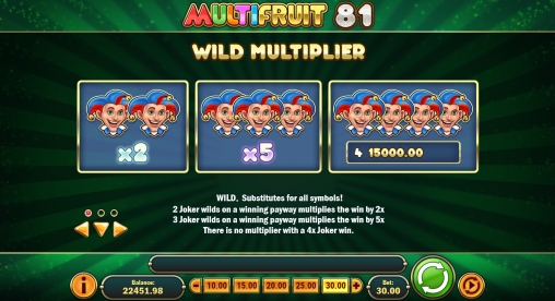 В MultiFruit 81 есть базовые картинки, расширяющиеся джокеры, дополнительные множители и другие призовые опции.