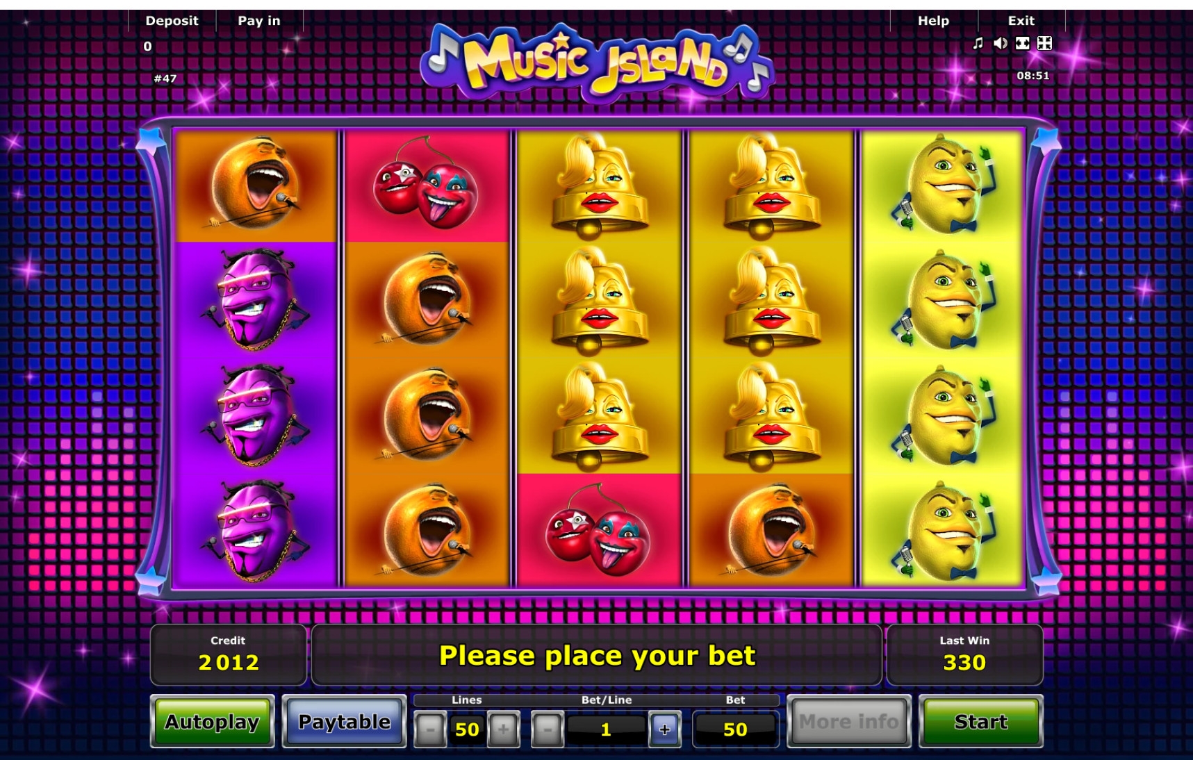 Открывайте видео-слот Music Island бесплатно или на деньги в интернет-казино StarGames и на других порталах с лицензионным «Новоматиком».