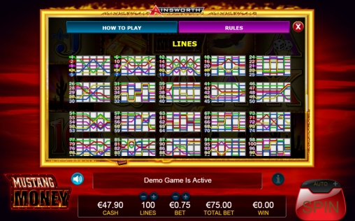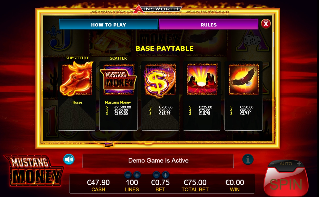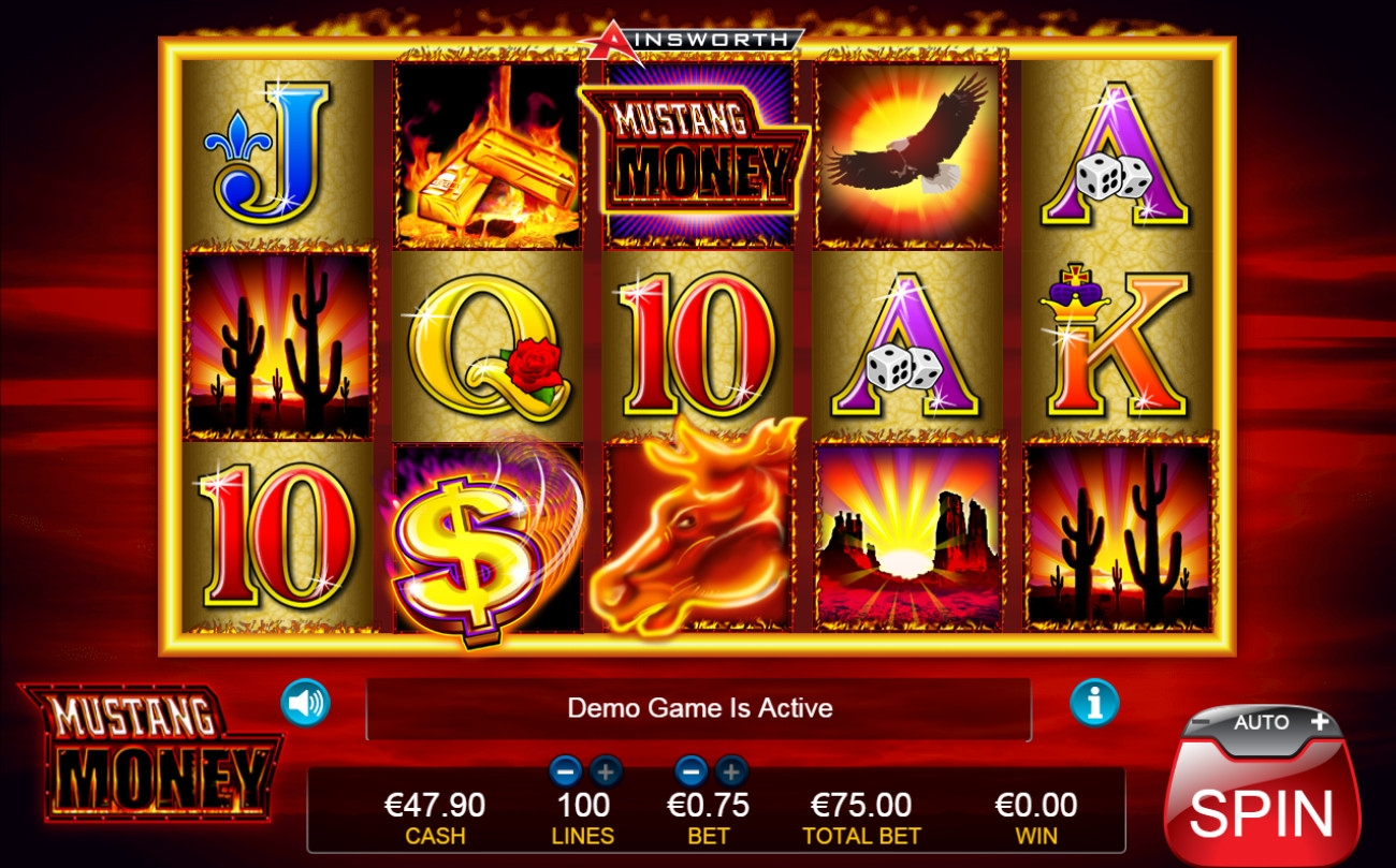 В этой статье от обозревателей Casinoz обсуждается еще одна модель компании Ainsworth, выпускающей оффлайновые и онлайновые азартные игры. Речь пойдет о видео-слоте Mustang Money, в котором выигрышные цепочки образуются на большом количестве линий, а также есть ряд дополнительных функций геймплея. Все они подробно рассматриваются далее.