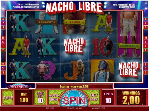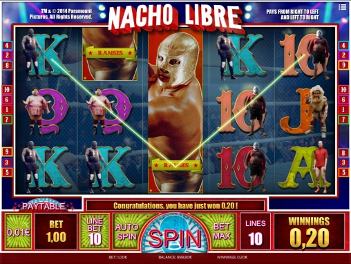 В Nacho Libre пять барабанов и десять линий, всегда активных по умолчанию. Ставки по ним всегда одинаковые. На экране после остановки спина картинки располагаются в три ряда.