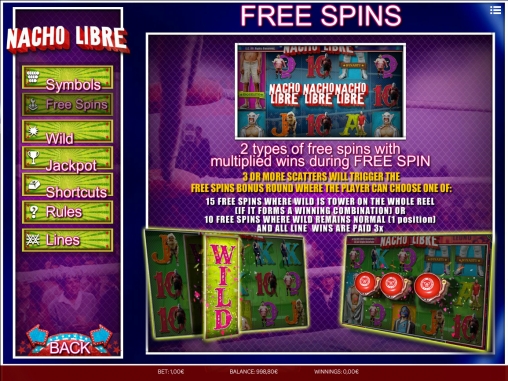 Кроме фри-спинов, джекпота и особых символов, других призовых опций в Nacho Libre нет.