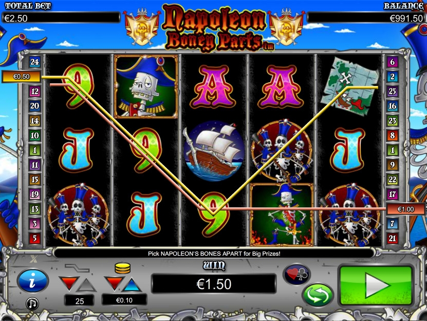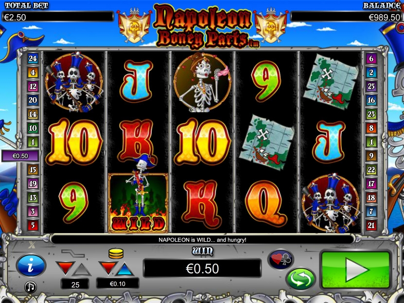 Napoleon Boney Parts – пятибарабанный видео-слот с тремя рядами символов на экране и двадцатью пятью линиями. В нем есть тематическая бонусная игра, специальные картинки, обладающие особыми функциями, раунд на удвоение выплаты, бесплатные спины и другие опции.