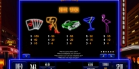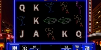 На экране слота можно увидеть карты, автомобиль, женские ножки, бокал для мартини и фламинго, изображенных в виде неоновых рекламных вывесок. Также на барабанах появляются номиналы карт от валета до туза, усыпанные бриллиантами.