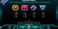 Несложно догадаться по названию, что дизайн видео-слота выдержан в неоновом стиле. В роли обычных картинок выступают логотипы с хищными животными, птицами и рептилиями, а также буквы, означающие номиналы карт от валета до туза.