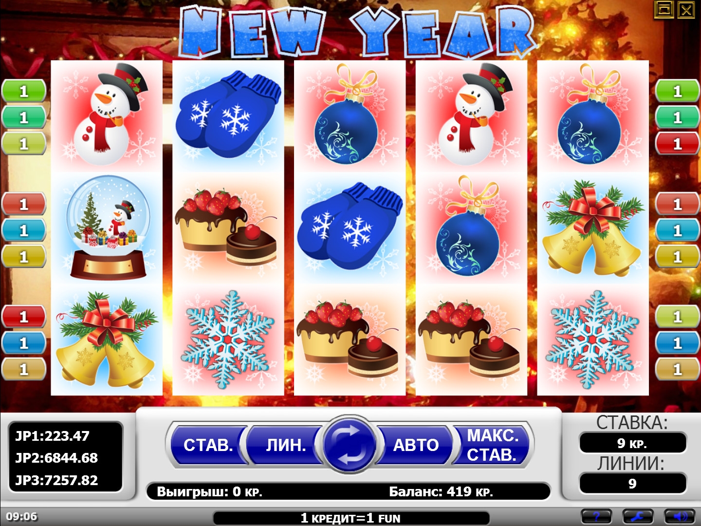 Автомат как раз под новогодние праздники, поддерживает радостную атмосферу. Хотя кроме фри-спинов ничем особо он похвастаться не может. Я бы поставил его в ряд со множеством посредственных автоматов.