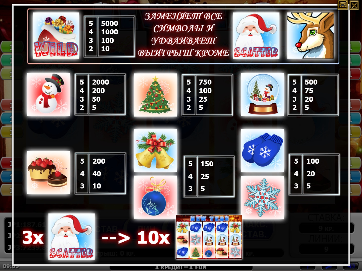 Особыми возможностями обладают Wild (мешок Санта-Клауса) и Scatter (сам главный герой). О них вкратце далее: