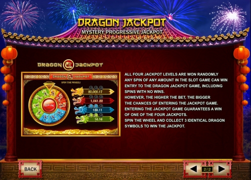 Dragon Jackpot. Все четыре джекпота накапливаются путем отчисления одного процента из ставок настоящими деньгами, которые делают клиенты. Зеленый джекпот начинает расти с десяти евро, синий – со ста, красный – с одной тысячи, а желтый – с двадцати тысяч.