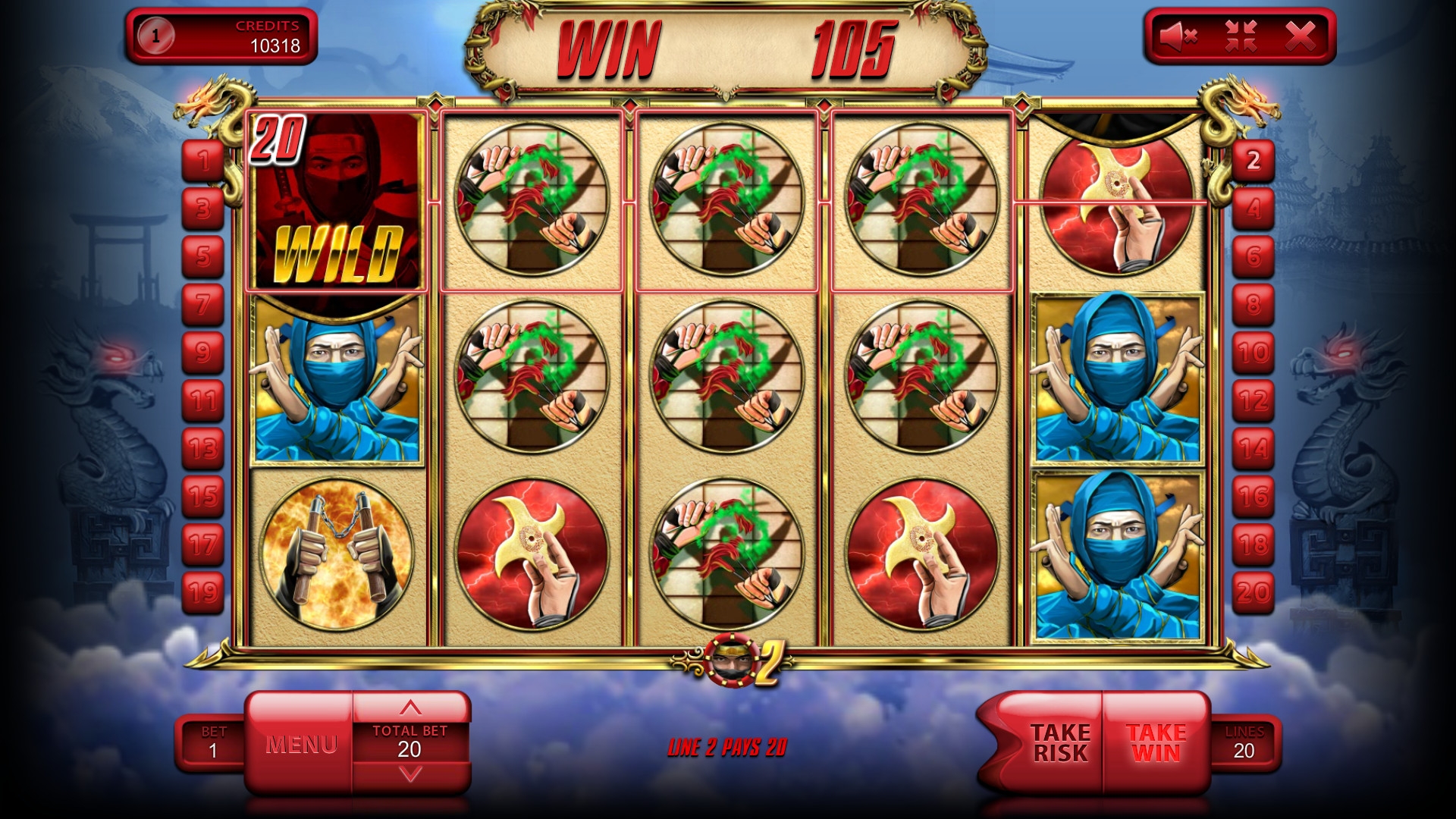 В The Ninja не осуществляется розыгрыш прогрессивного джекпота.