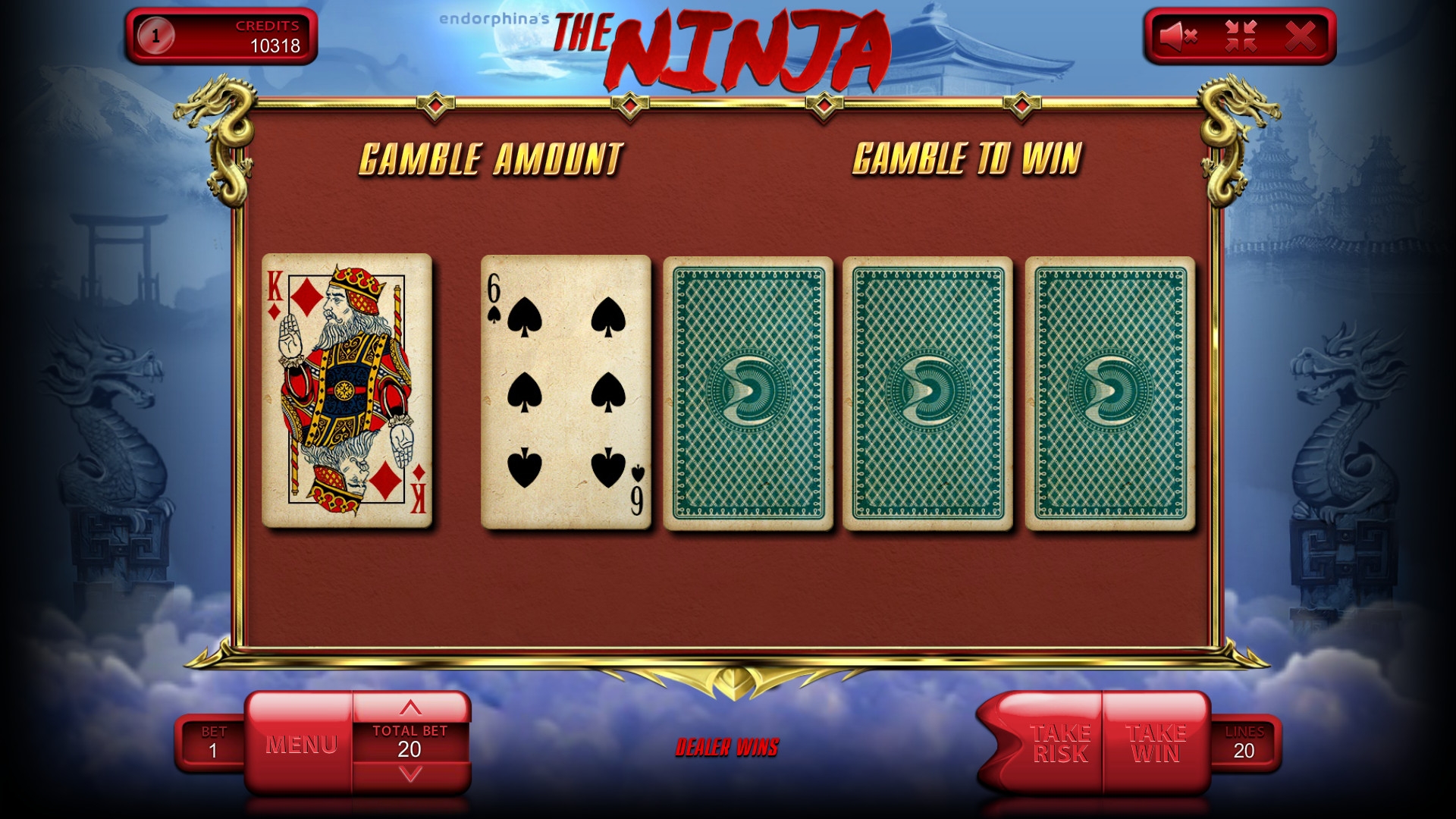 Кнопка риск-игры появляется лишь в ситуации, когда она может быть использована.
