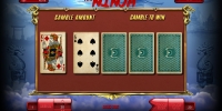 Игра по шансам возможна при получении выплат за спин. Она запускается по желанию пользователя на отдельном экране. Нужно наугад открыть одну из четырех карт. Если она будет старше карты дилера, выплата удвоится. При равных картах объявляется ничья. Если же открытая карта старше, игрок лишается ставки.