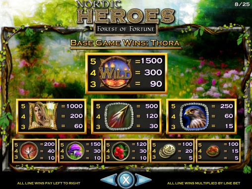 В Nordic Heroes пять барабанов и пятнадцать картинок на основном экране. Играть можно лишь по тридцати активным линиям, сделав по ним равные ставки. На каждую полосу принимается от одного до пятидесяти кредитов. Выходит, что на спин можно ставить не меньше тридцати единиц и не больше полутора тысяч.
