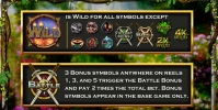 - Battle Bonus представляет собой серию бесплатных спинов, во время которых ставку за клиента делает заведение. В этих запусках главный герой будет сражаться с монстрами. Как именно это происходит, вы увидите сами. Вращения будут продолжаться, пока персонаж не убьет трех чудовищ, или же пока он сам не будет побежден. Если ему удастся одержать победу, вы получите дополнительные спины. При повышении уровня героя на экране будут появляться специальные картинки, дающие ему особые возможности, а вам различные преимущества (множители, выплаты и так далее). Они подробно рассматриваются в справочном разделе.
