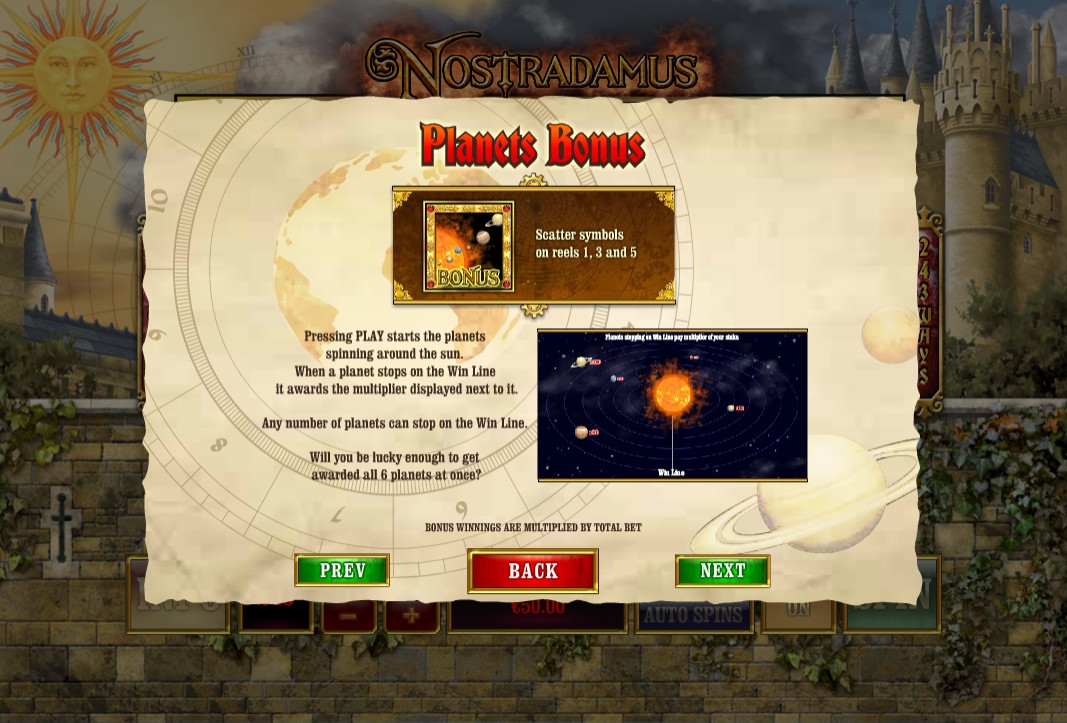 Самый классный расклад в этом Нострадамусе это когда он выдает планеты. Мне такое счастье привалило уже пару раз, каждый из них принес больше чем все спины всместе взятые, включая и бесплатные. Так что ловите планетный бонус если в него играете.