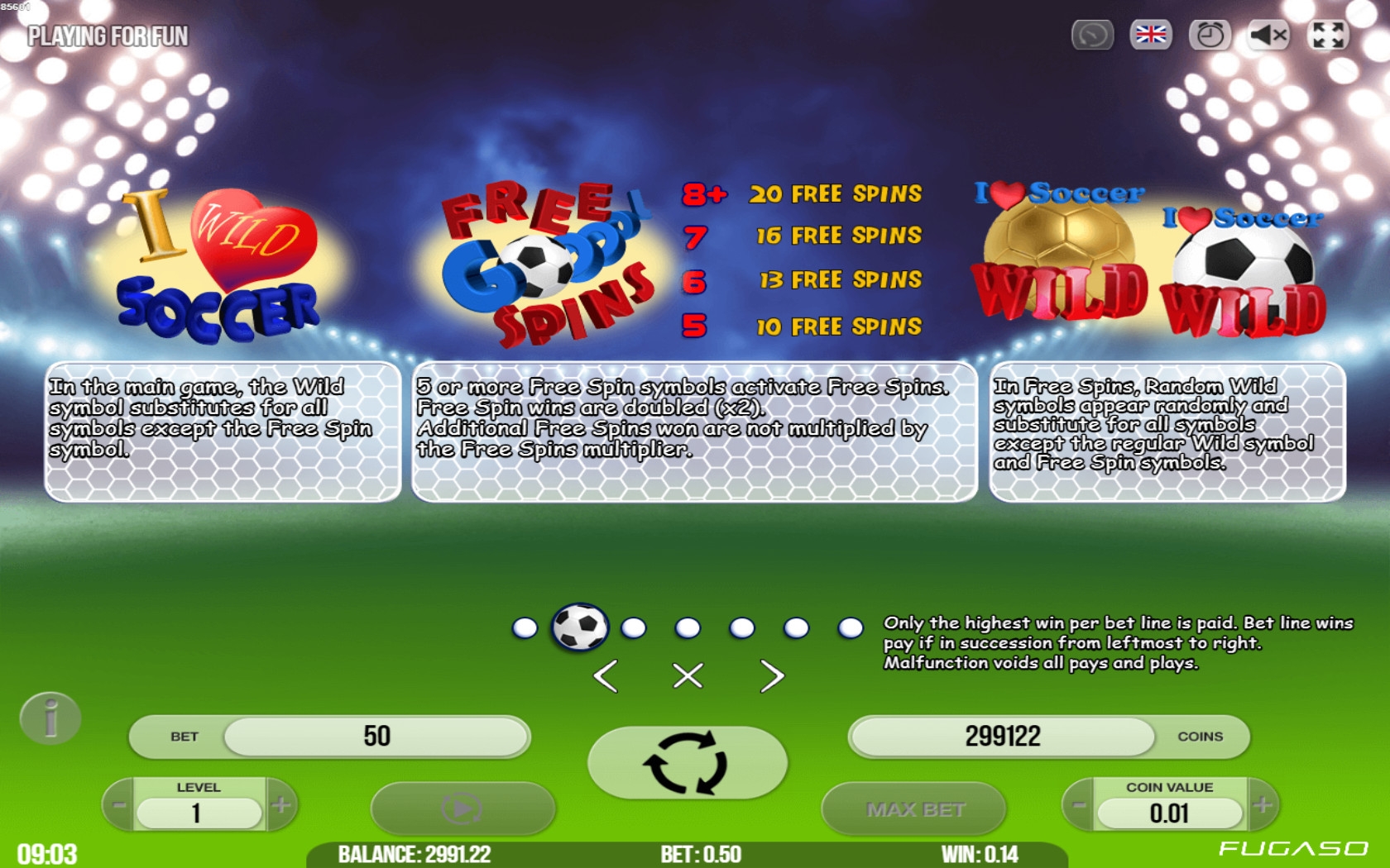 - Wild (надпись I Love Soccer) – это джокер. Он не составляет комбинации сам по себе, но дополняет цепочки из других картинок, кроме скаттеров.
