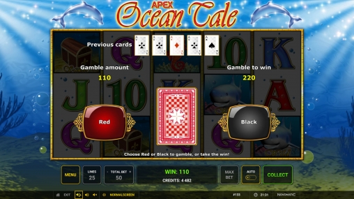 Начисленные кредиты можно сразу не выводить на баланс, а попытаться увеличить сумму в игре на удвоение. Она проходит по традиционным правилам в духе «угадай цвет карты». О лимитах читайте далее в обзоре Ocean Tale.