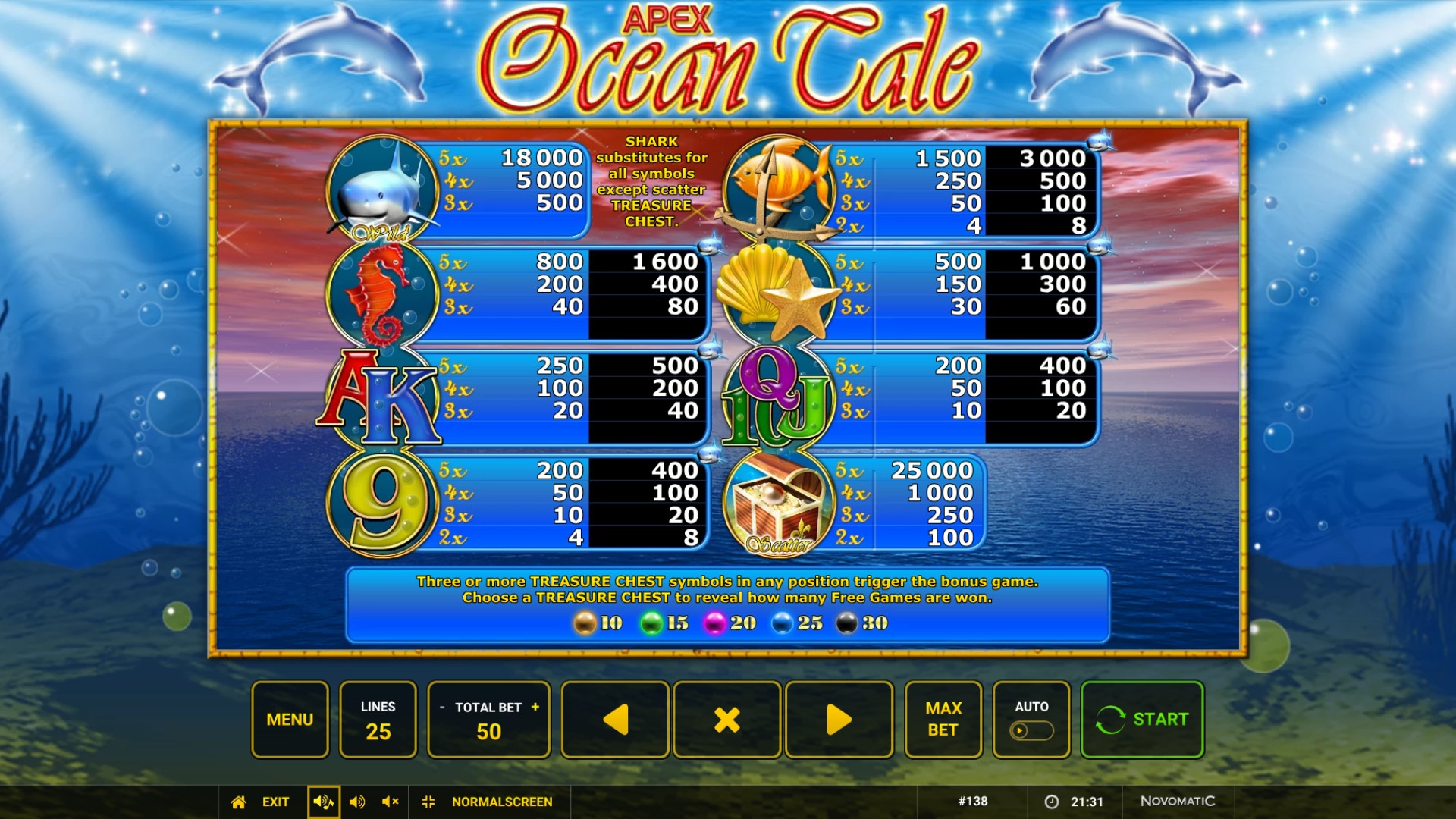 В Ocean Tale нет прогрессивного джекпота Novomatic.