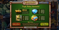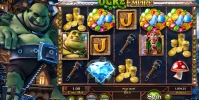 Игра запускается в дневном режиме. На барабанах появляются золотые монеты, дубинка огра, мухомор, россыпь самоцветов, бриллиант, сам огр и буквы J, Q, K и А.