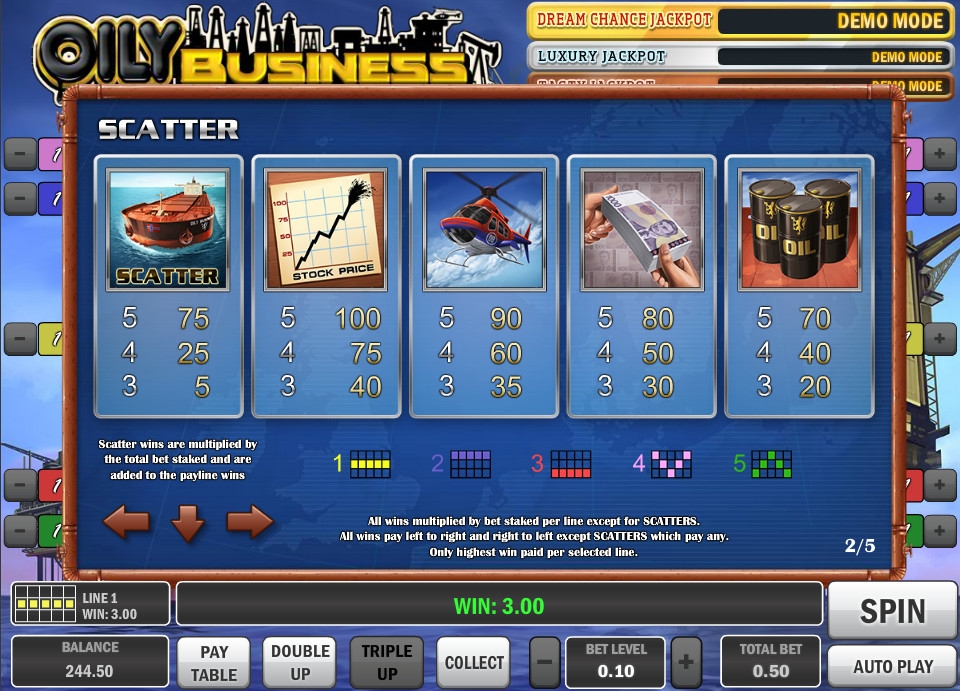 Любителям следить за котировками нефти будет любопытно сыграть на этом автомате. Особенно интересны бонусные игры и джекпоты, которых насчитывается три разновидности. Так что можно неплохо выиграть.