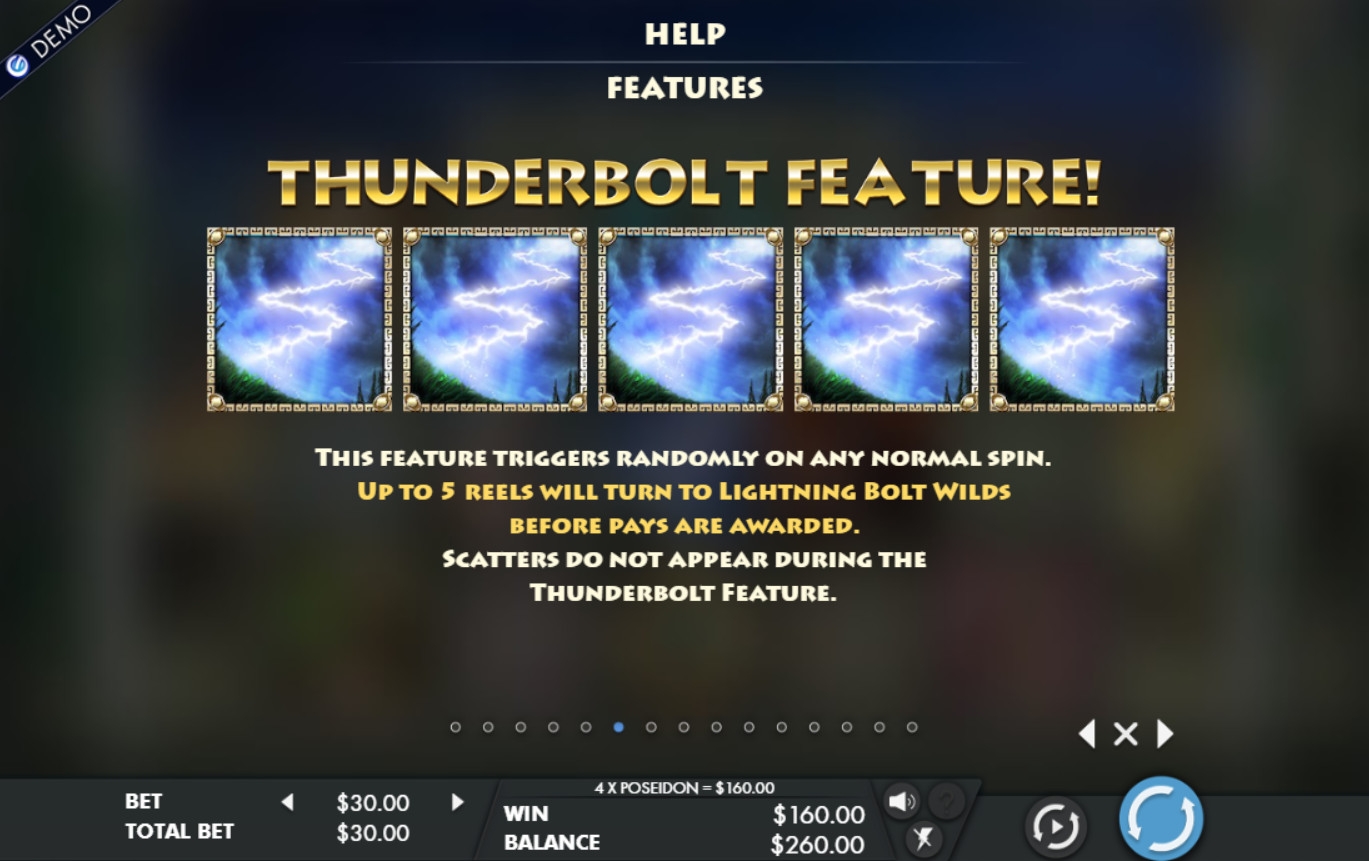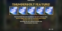 - Thunderbolt Feature – Эта функция запускается случайным образом в базовых спинах. До пяти колонок заполняются джокерами сверху донизу. Они помогают составлять комбинации. Скаттеров на экране в таких случаях не бывает.