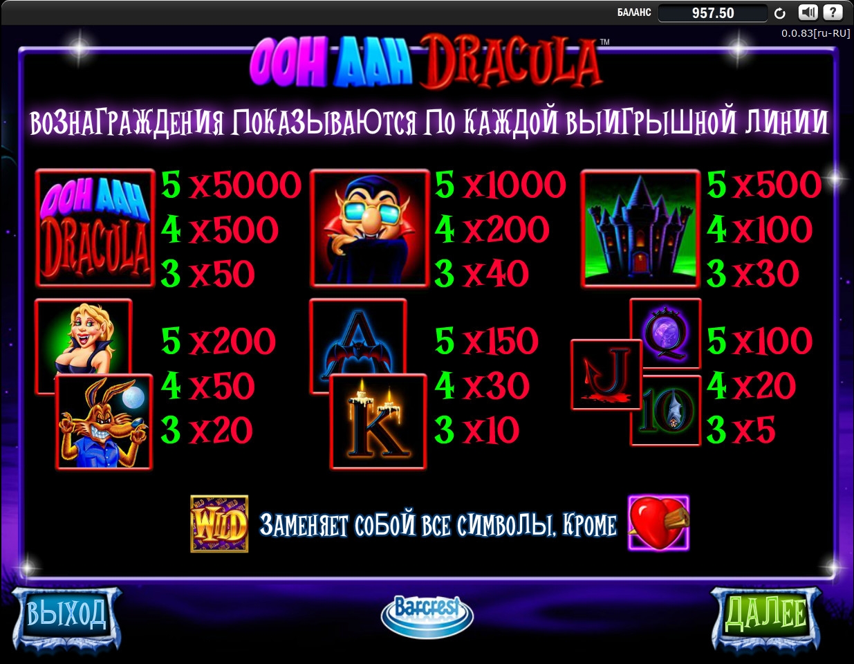 Многие казино предлагают скачать игровой автомат Ooh Aah Dracula или запустить его во флэш-версии на сайте.