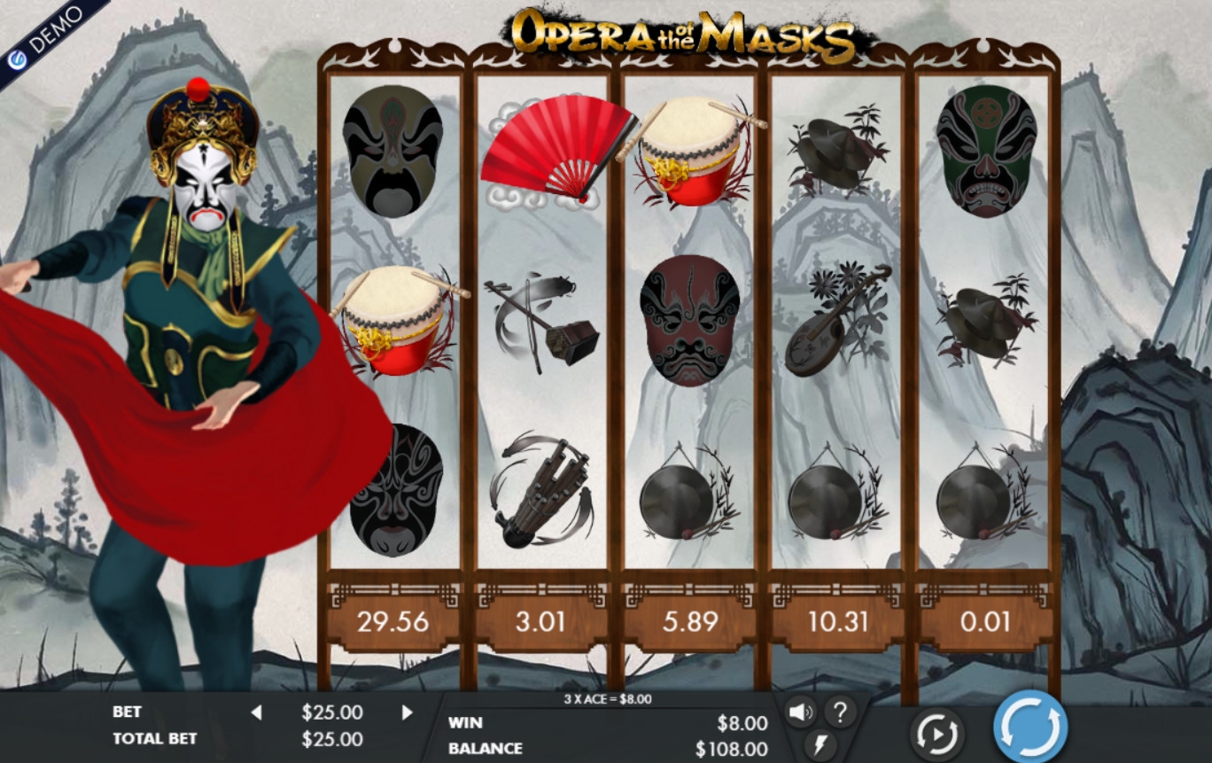 Компания Genesis Gaming выпустила игровой автомат Opera of the Masks. Модель посвящена китайскому традиционному театру. В настоящее время его чаще называют Пекинской оперой. Характерная особенность этого направления в искусстве – плотный слой разноцветного грима. Он скрывает, подобно маске, лицо артиста и наглядно демонстрирует его принадлежность к определенному амплуа.