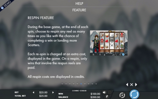- Respin Feature – В любом базовом спине разрешается повторно запускать один барабан. Эта функция платная. Сумма определяется в каждом случае отдельно. Стоимость указывается под колонкам. Респины допускаются неограниченное количество раз. Во время бесплатных вращений они не доступны.