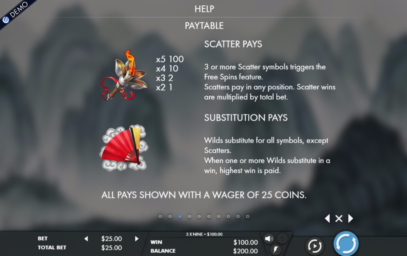 Активные линии правилами не предусмотрены. Ставка на раунд кратна двадцати пяти: от 0.25 до 50 долларов на спин.