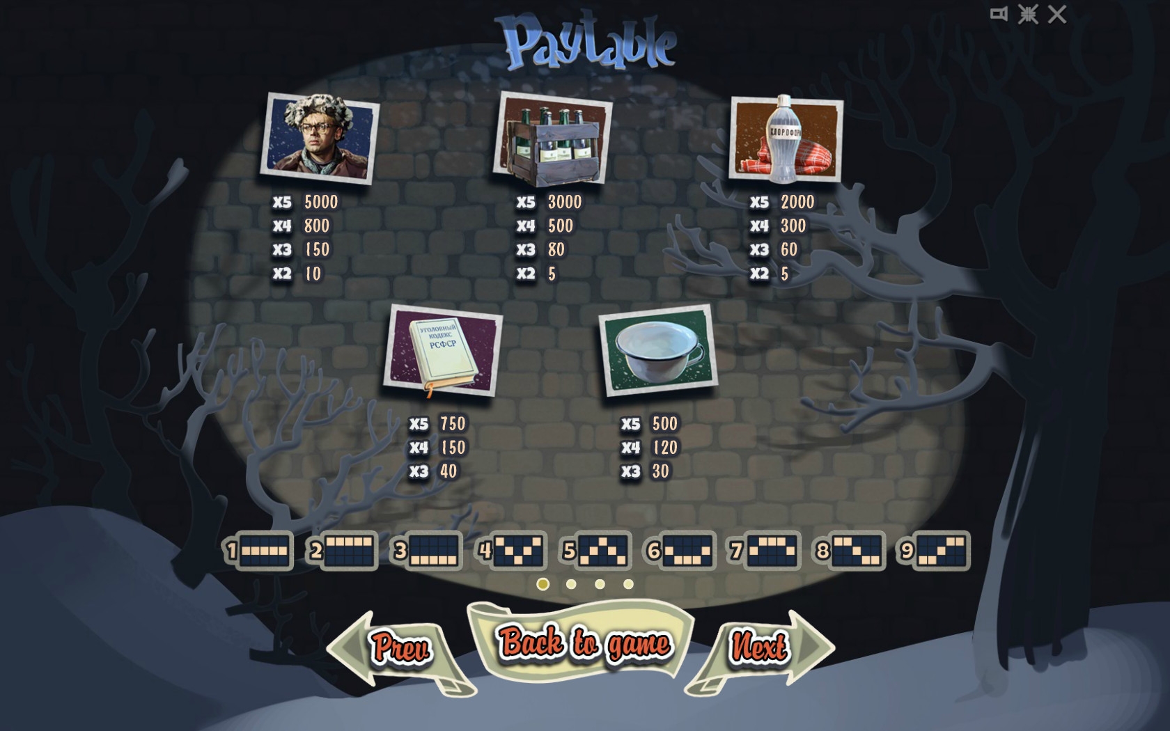 Открыв игровой автомат, вы увидите главных героев фильма, различные предметы, напоминающие о памятных сценах из комедии (горшок, хлороформ, ящик спиртного, кодекс РСФСР), и номиналы карт от десятки до туза.