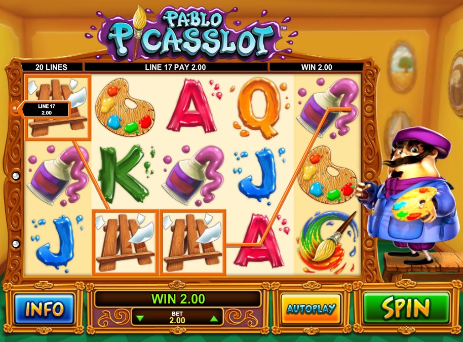 Pablo Picasslot – онлайн видео-слот, обладающий пятью барабанами, двадцатью линиями, тремя рядами картинок на экране и разнообразными функциями, в числе которых особые символы, несколько бонусных раундов и многое другое.