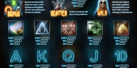Таблица состоит из нескольких страниц с коэффициентами, схемой образования комбинаций и описанием всех бонусов.