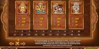 На барабанах видео-слота изображены золотые статуэтки различных богов, священной коровы и руки с камнем. Кроме того, на экране появляются обозначения номиналов игральных карт от десятки до туза.