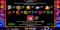 Выплаты рассчитываются по множителям от х2 до х10000 и ставке на полосу. Начисленные деньги автоматически переводятся на баланс клиента. Риск-игры на удвоение в Peking Luck нет.