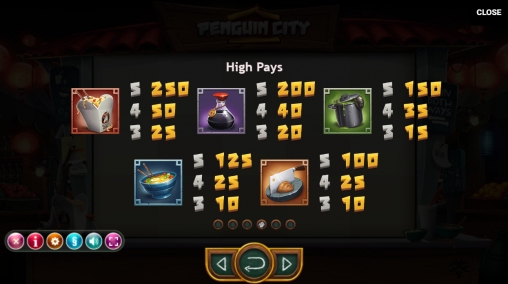 В игровом автомате Penguin City пять барабанов и пятнадцать ячеек для картинок. Символы выстраиваются в три ряда.
