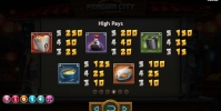 В Городе пингвинов беспощадный император истязает своих подчиненных, заставляя их работать до изнеможения. Компания друзей, которых тиран заставил трудиться на кухне, решает сбежать из рабства. Удастся ли смельчакам удрать от самодержца? Об этом вы узнаете, когда протестируете видео-слот Penguin City компании Yggdrasil.