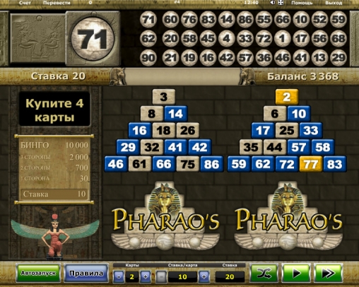 Игры по шансам в бинго-онлайн Pharao’s Bingo нет. Выплата сразу оказывается на счету.