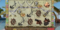 На барабанах игрового автомата можно увидеть девять обычных картинок и три специальных. По общим правилам комбинации образуют изображения пиратского флага, пожилого пирата в очках, попугая, пистолетов, сабель, компаса, подзорной трубы, штурвала и якоря.