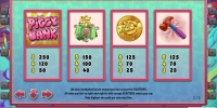 В призовом раунде видео-слота вы будете разбивать копилки, выбирая их в произвольном порядке. Они приносят выплаты размерами до двадцати пяти общих ставок на спин. Действовать так можно, пока не попадется копилка, завершающая игру.